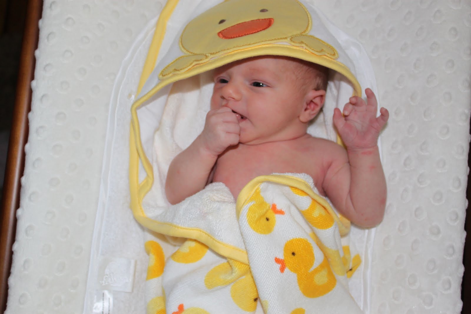 We are so excited to welcome our new arrival Brooke Marie McSpadden. She was born on Friday June 11th at 10:32 AM. She weighed in at 6 pounds 8 ounces. Her length was originally recorded as 17 inches; but changed to 18 and 1/2 inches once she was checked in the nursery. I think it was hard to measure because her breeched legs kept flying up in the air.